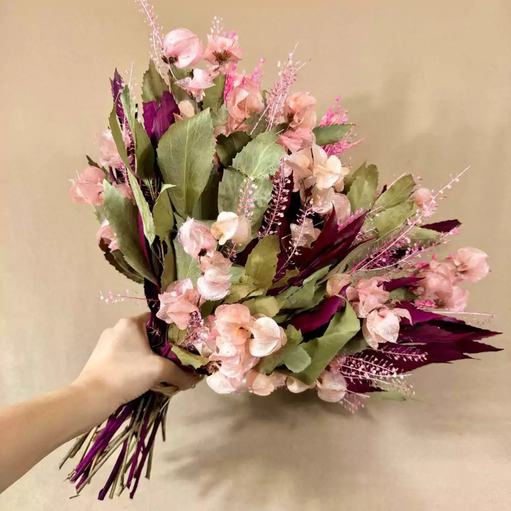 Composto por plantas naturais desidratadas em tons de verde, marsala e rosa. Nosso buquê é perfeito para presentear ou colocar em um vaso.