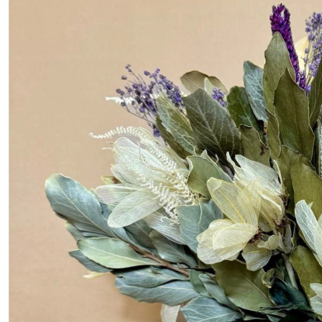Trabalhamos apenas com planta natural desidratada no ateliê, preservando a máxima qualidade em nossos arranjos com beleza natural das flores. Não trabalhamos com planta artificial de plástico ou silicone.