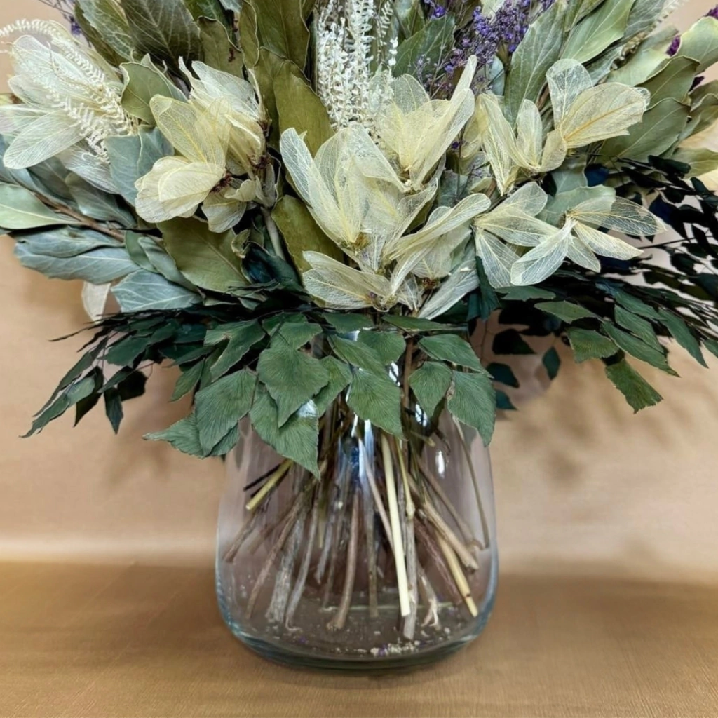 - Composição do Arranjo: Mix de plantas naturais desidratadas