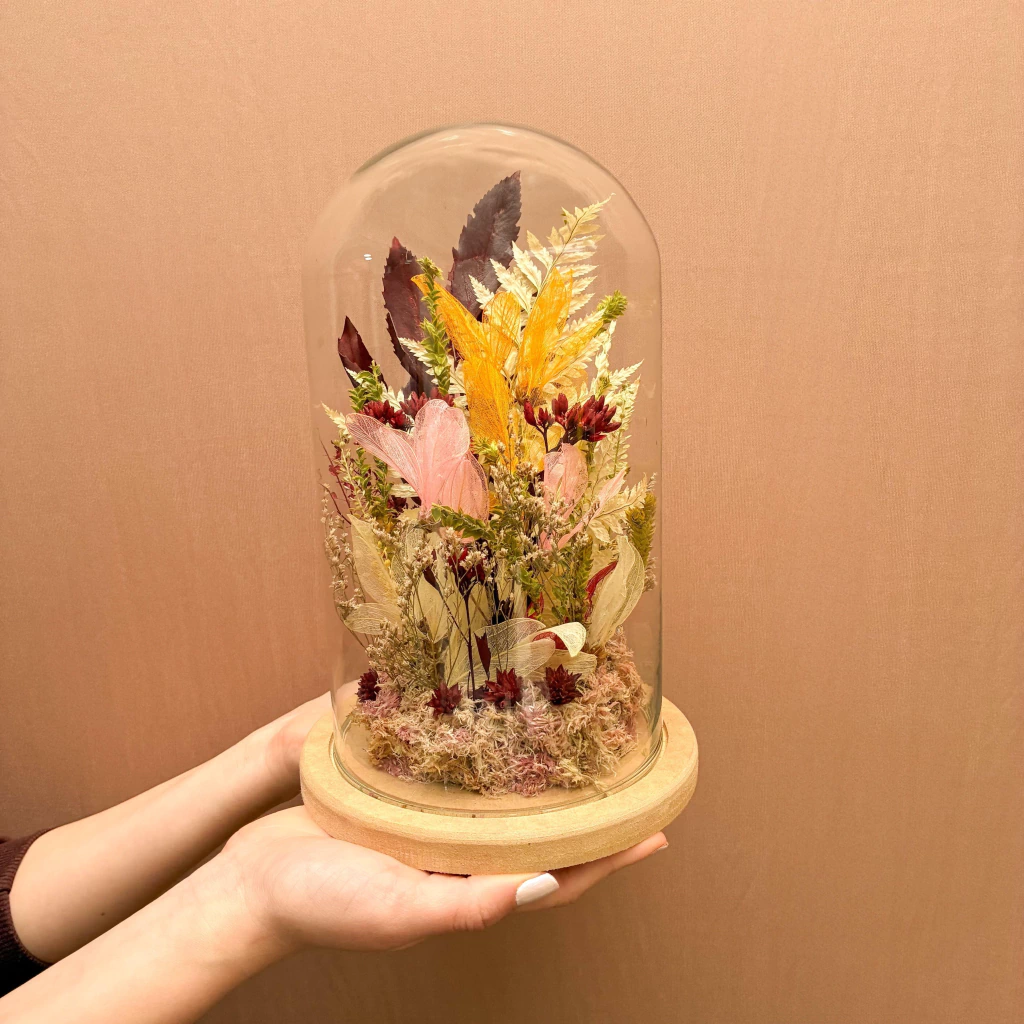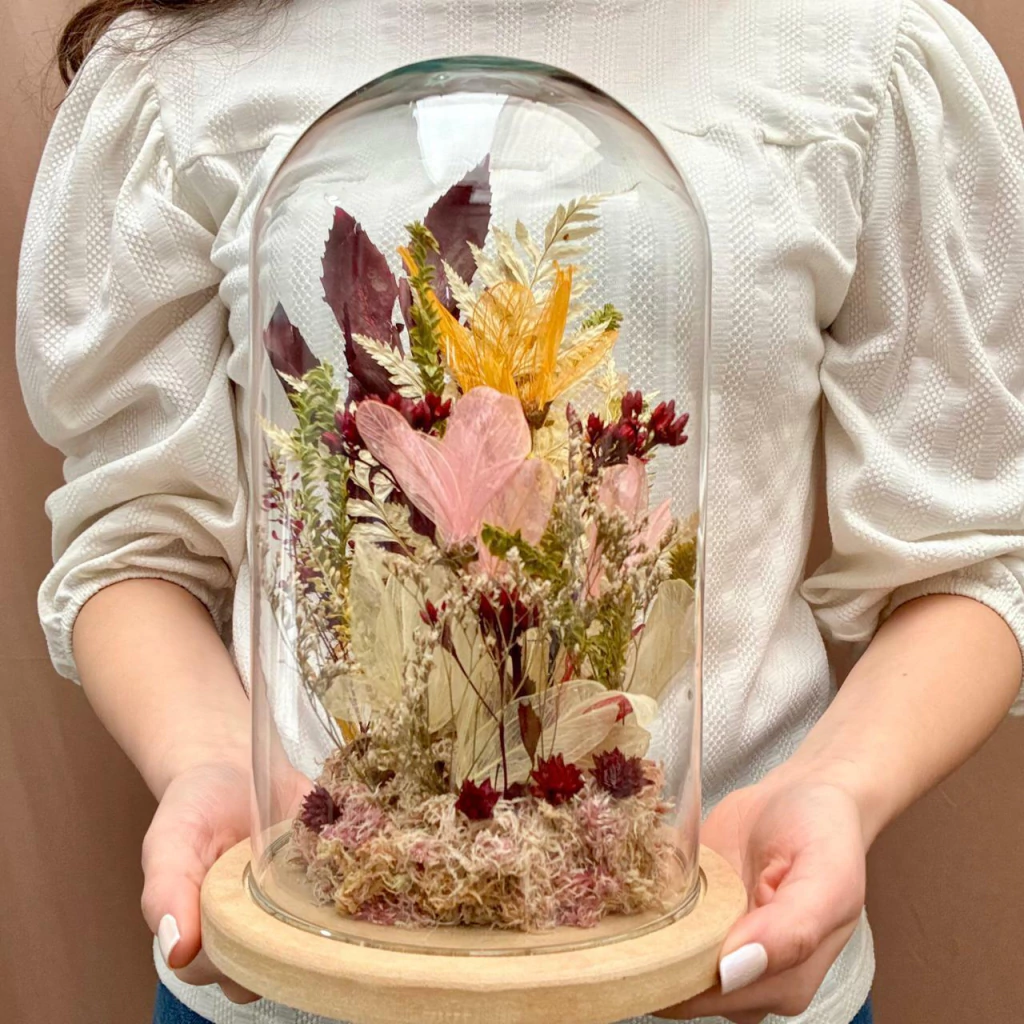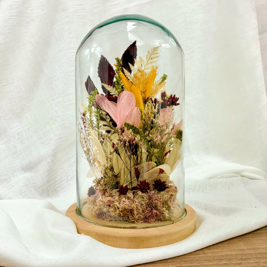 Um pedaço da natureza preservado no tempo. Feito com carinho e atenção a cada detalhe, essa cúpula reúne texturas, formas e cores naturais.